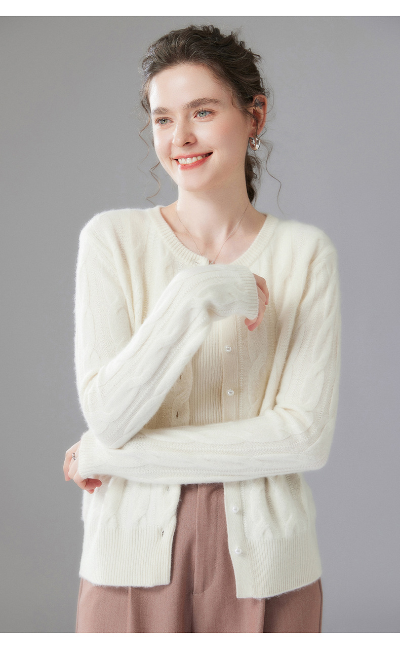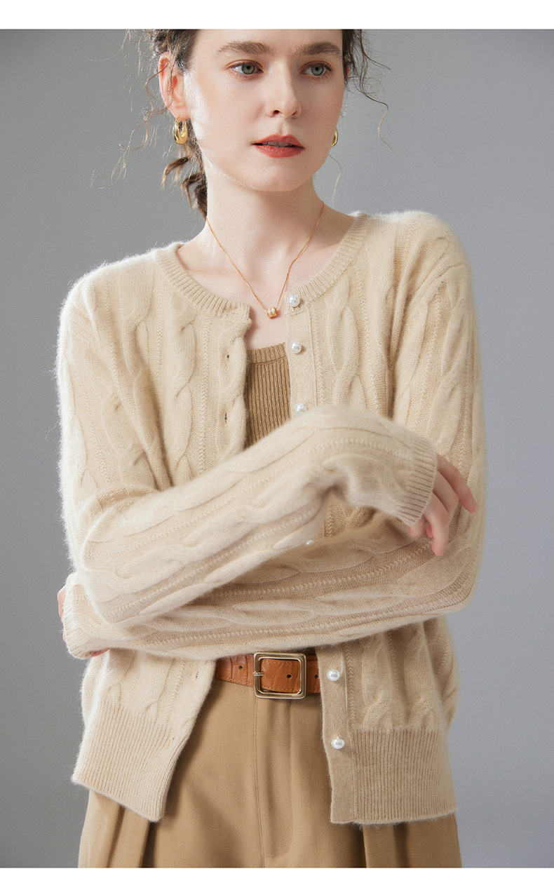 Autumn And Winter New Pure Color Cashmere Women's Knitted Cardigan