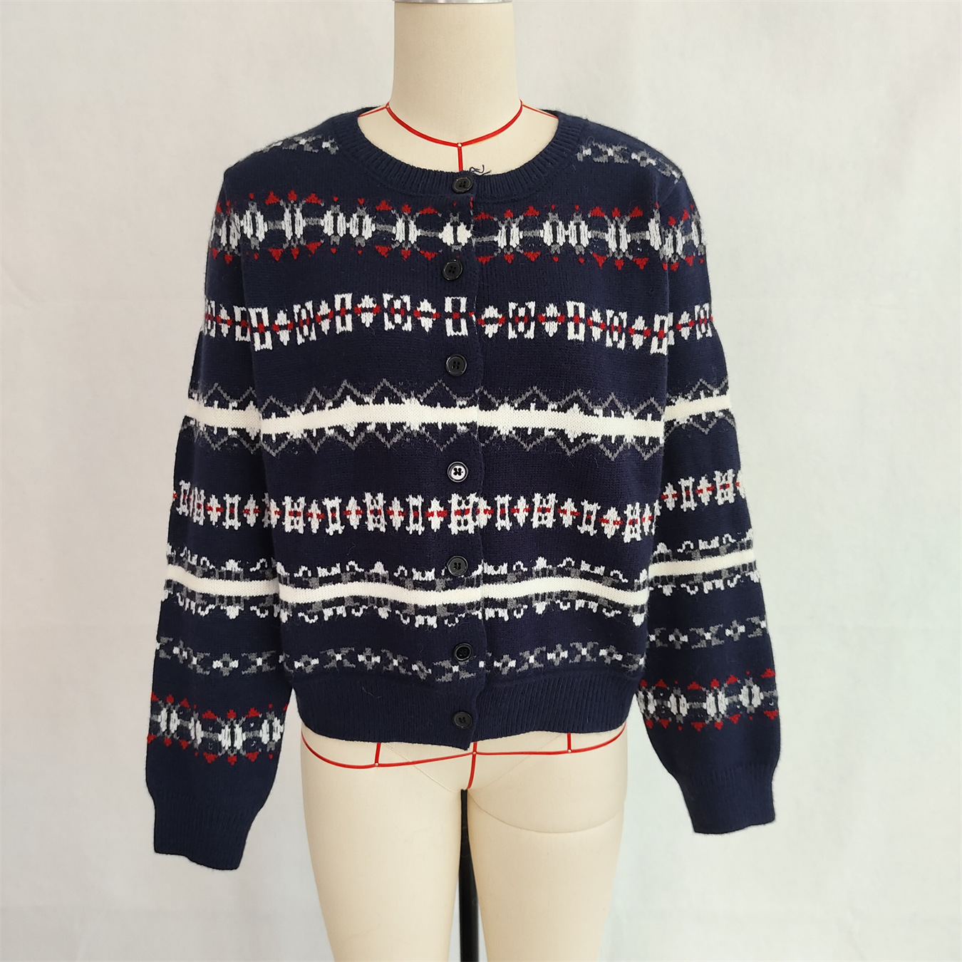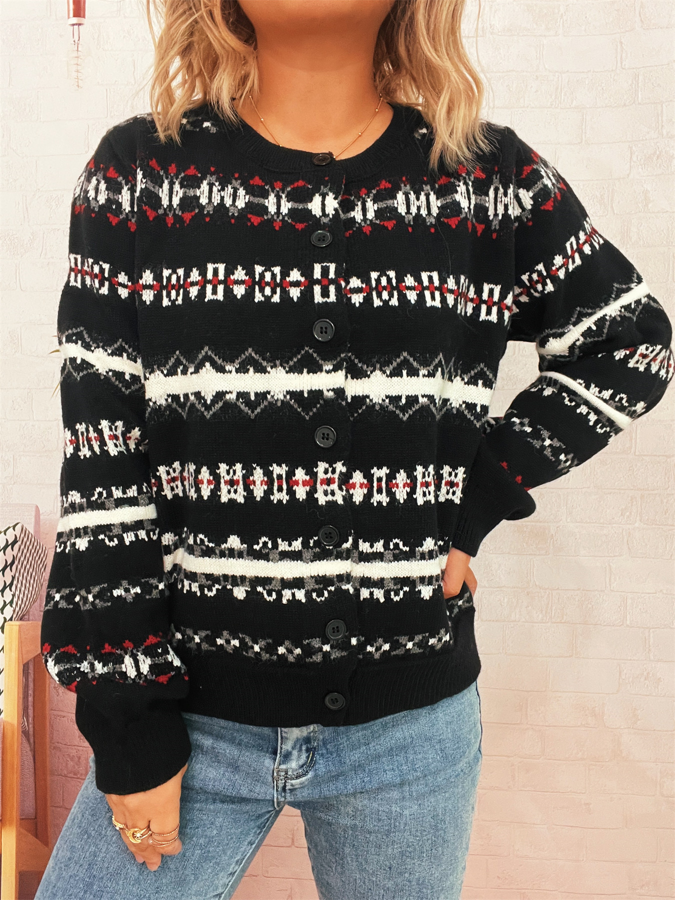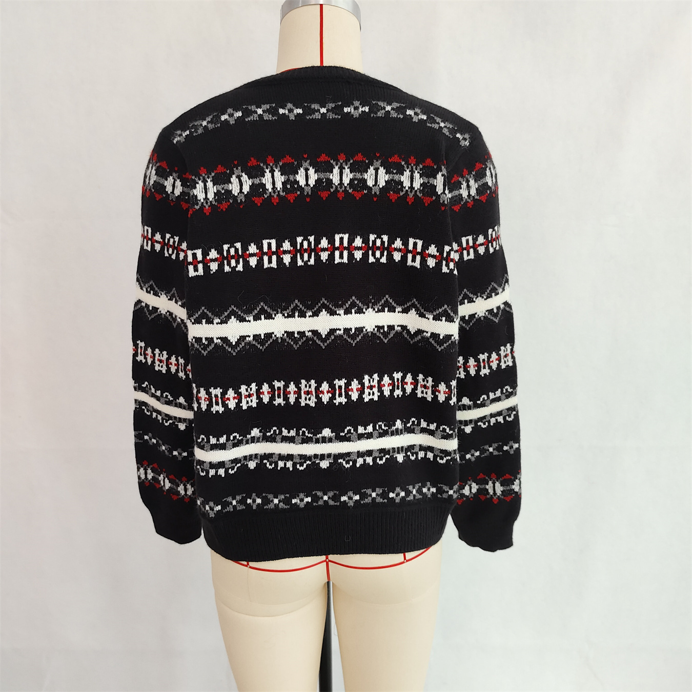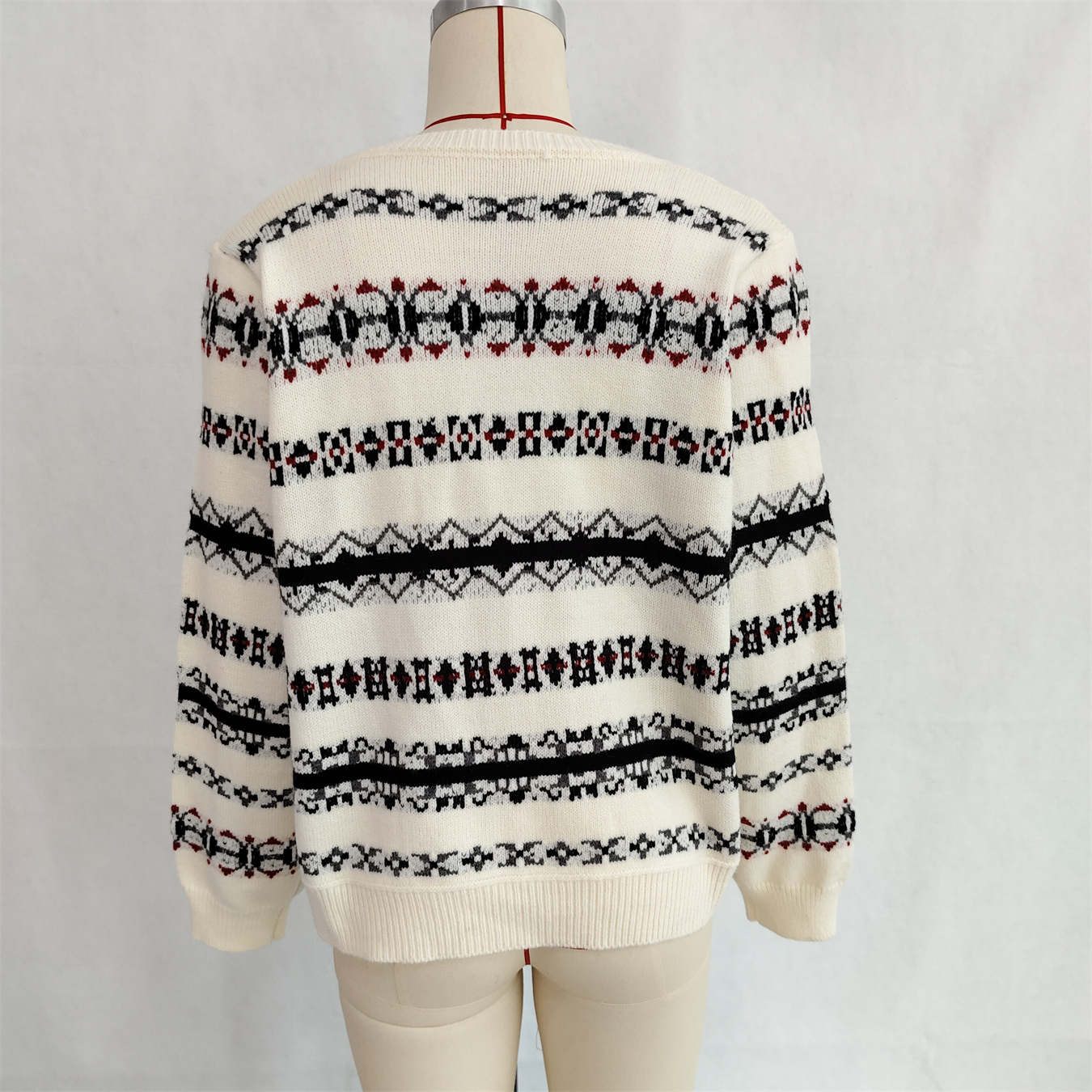 Autumn And Winter New Retro Rhombus Pattern Contrast Color Round Neck Long Sleeve Commuter Sweater