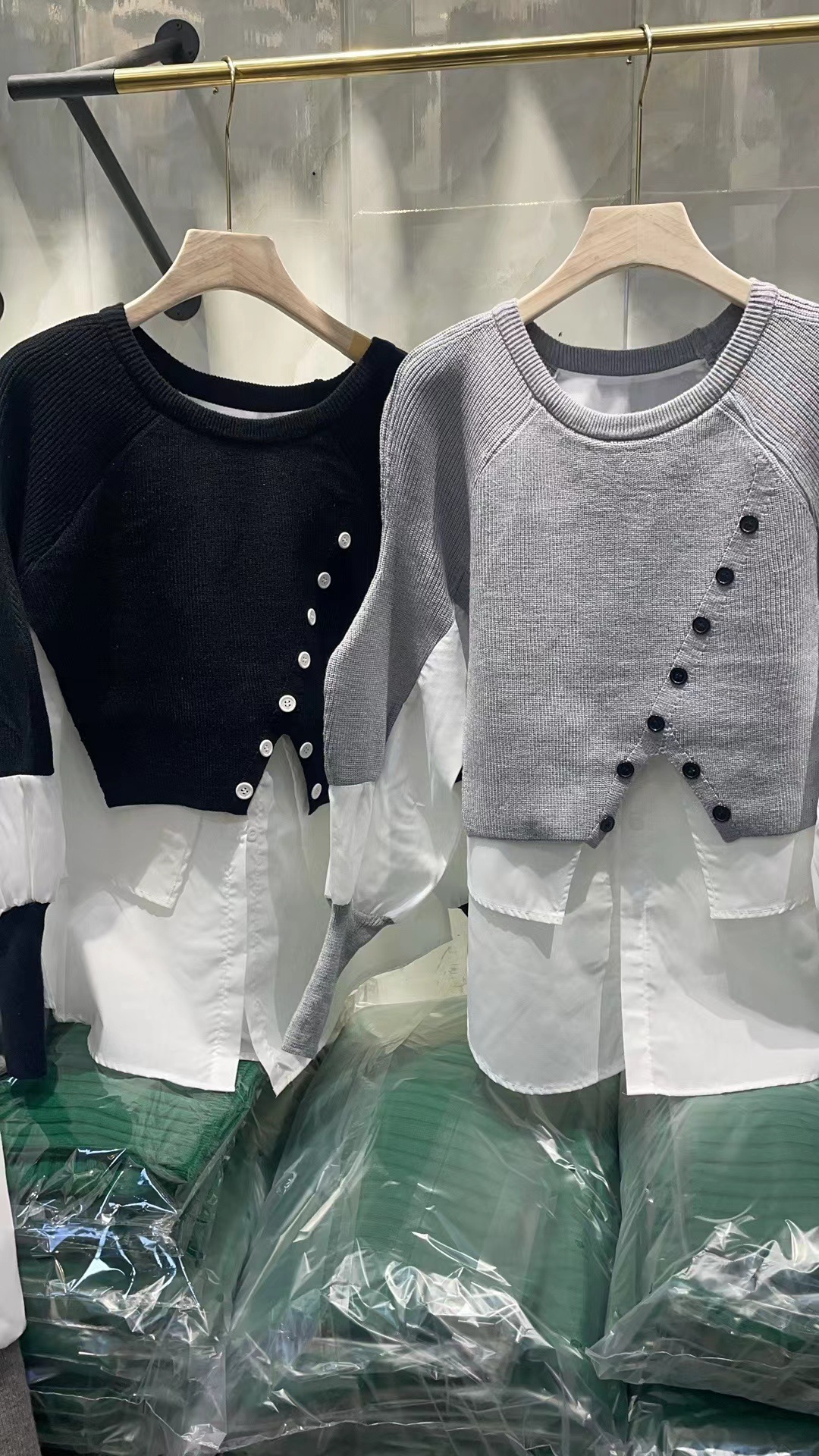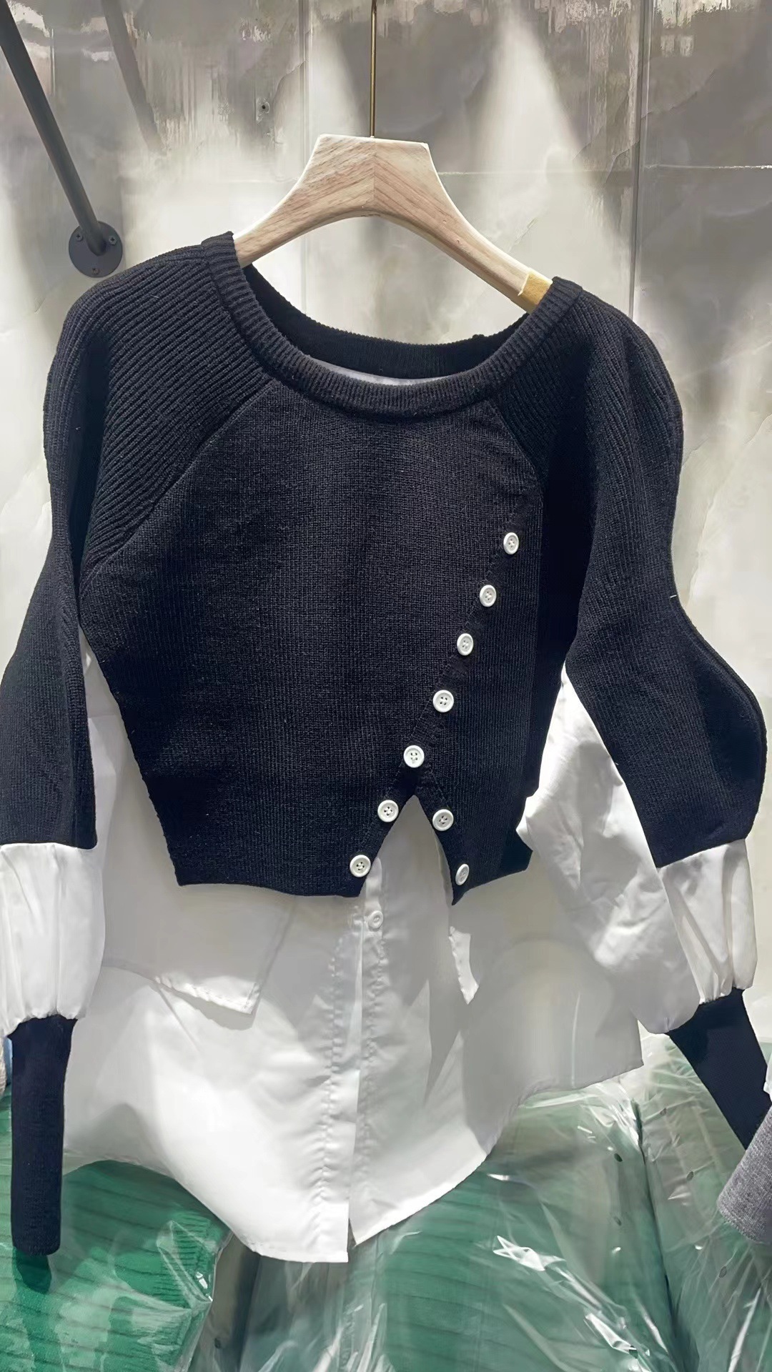 Autumn And Winter Pullover Women's Stitching Shirt Fake Two-piece Fashion
