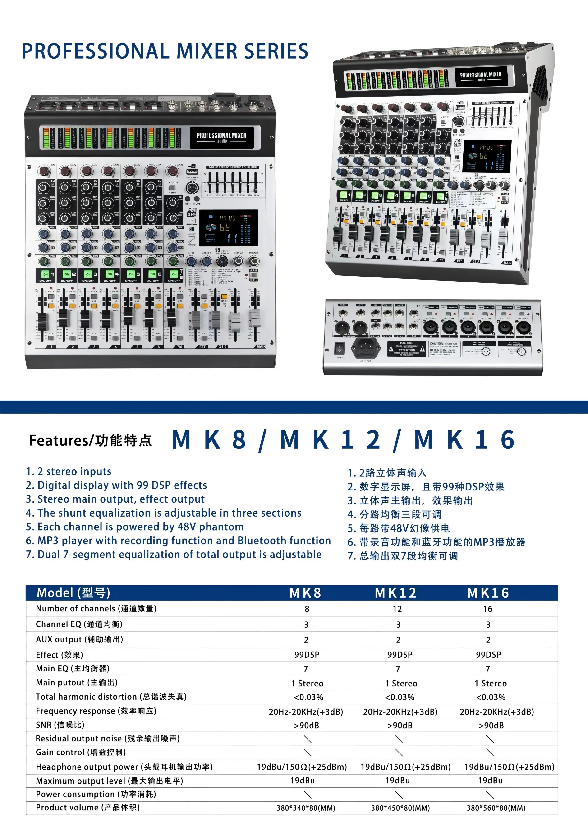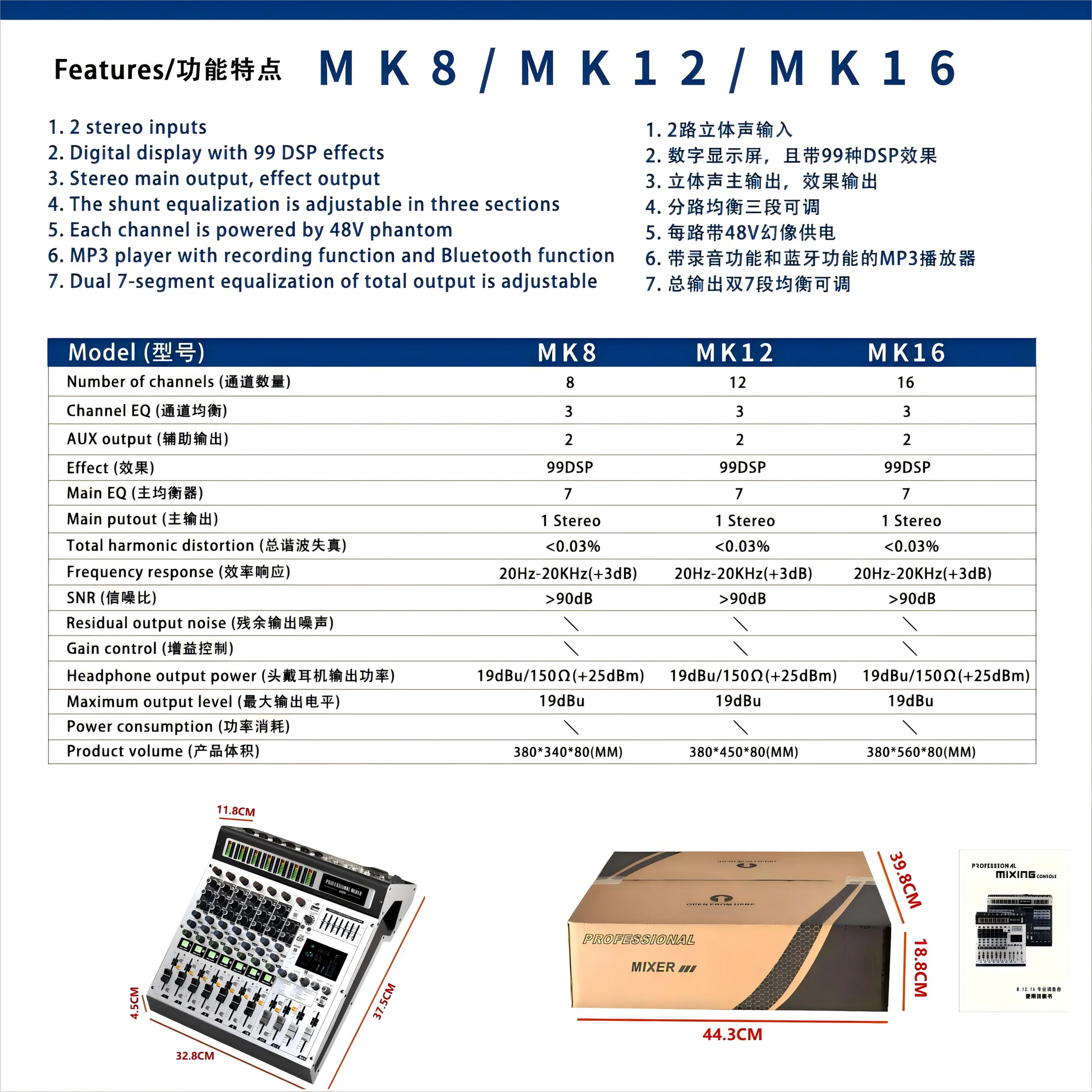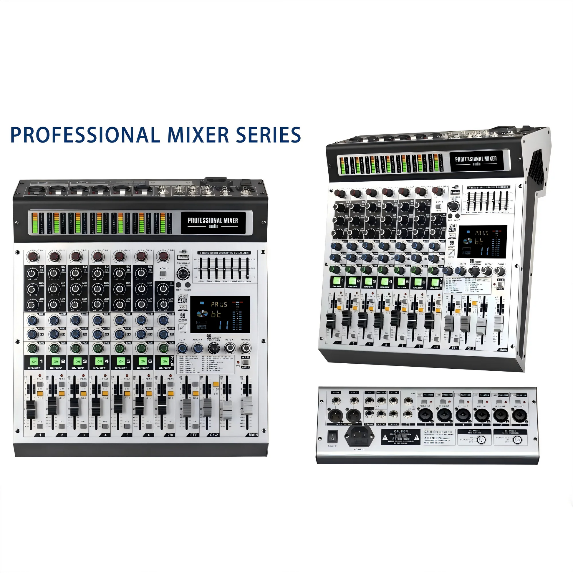 New 8 Channel Interface Audio 99 Effects Digital Professional Audio Mixer with 2 with USB +48V Phantom Power