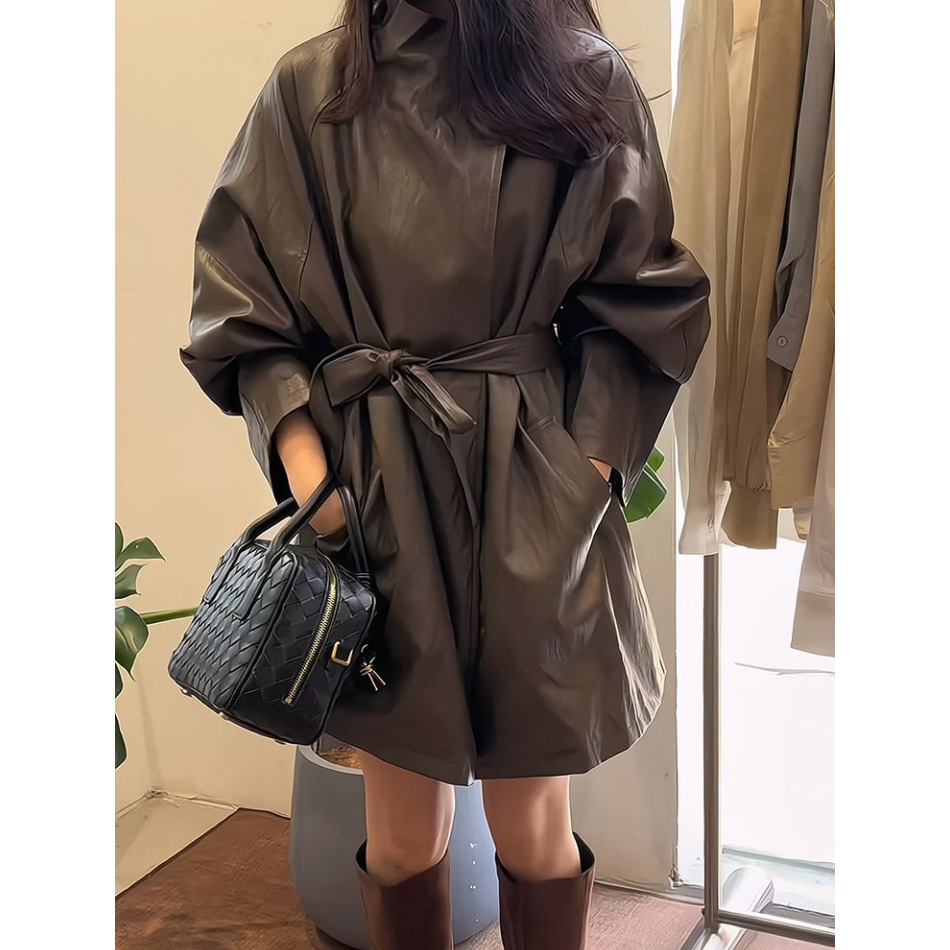 High-grade Temperament Fried Street Anti-aging Mid-length Leather Coat