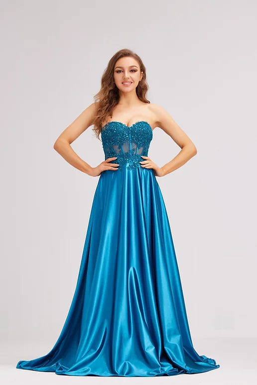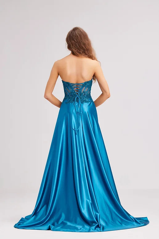 Indulge in luxury with our J23025 prom dress. This elegant ball gown features a stunning A-line silhouette, strapless design, and bold hot pink, navy, and teal colors. With convenient pockets, you can dance the night away in style and comfort. Elevate your prom experience with this exclusive and sophisticated dress.