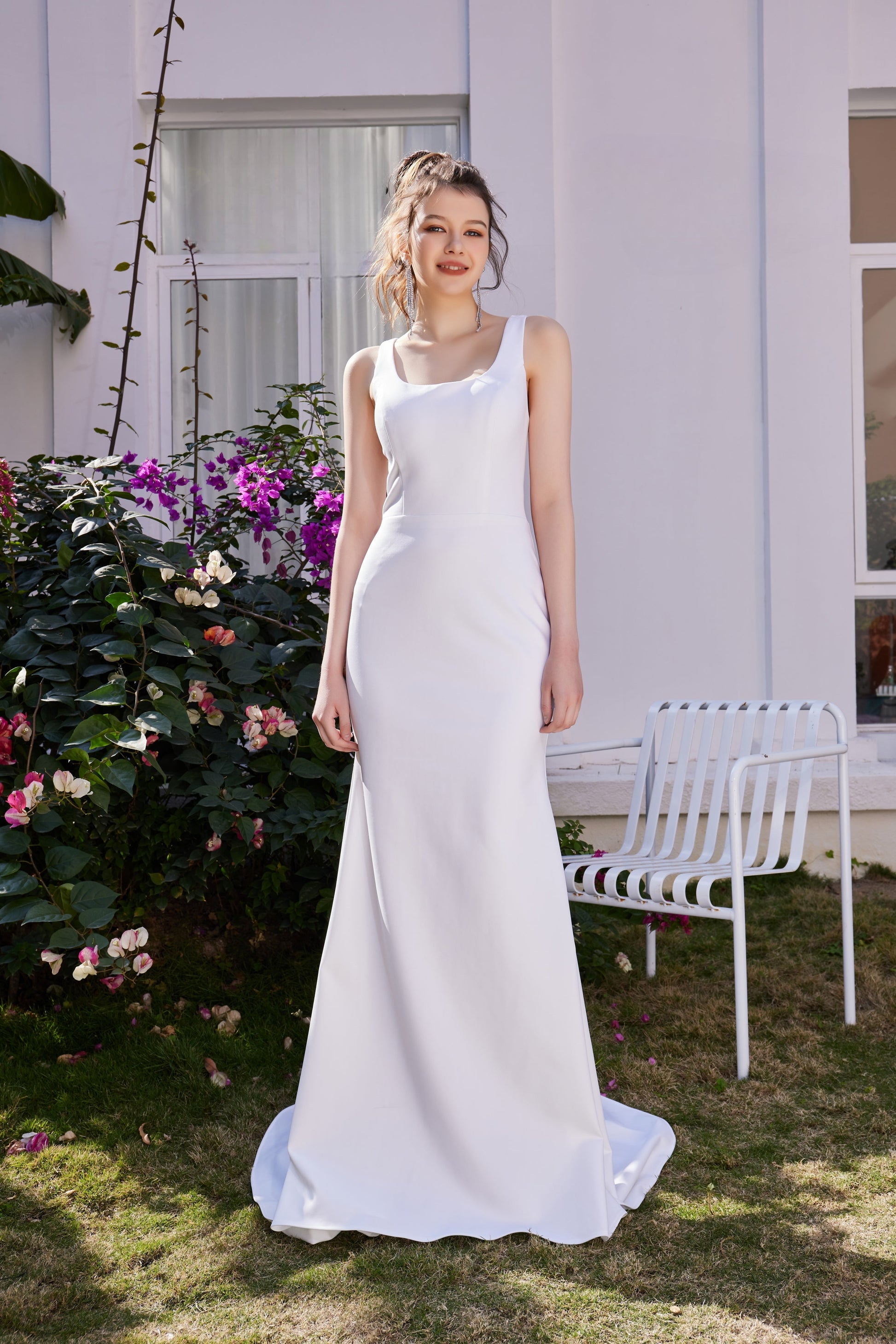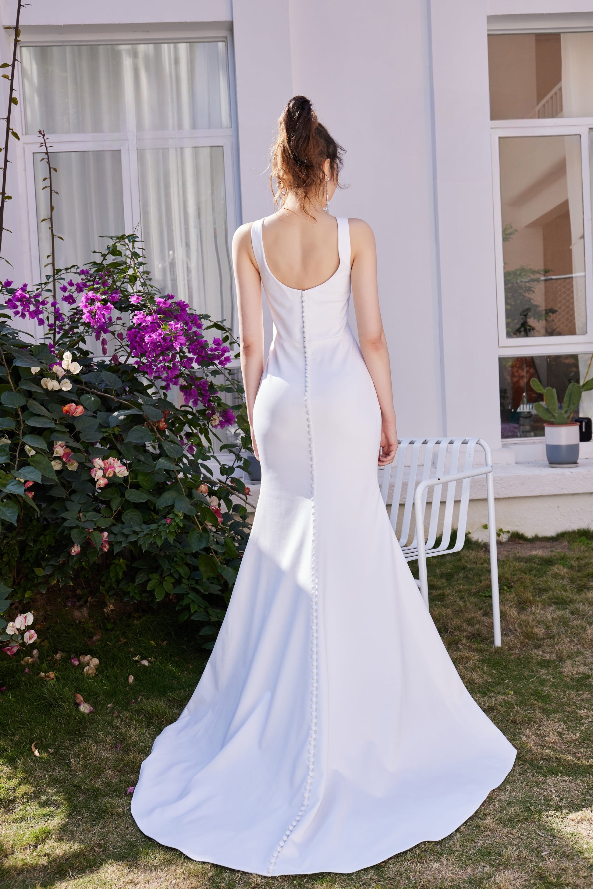 Indulge in the luxurious and exclusive JA3009. This ivory fitted dress boasts a stunning open back, adorned with elegant buttons and a convenient zipper. Elevate any occasion with this sophisticated piece that combines artful design and effortless style.