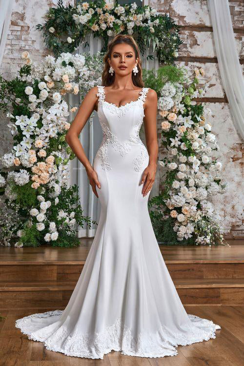 Elevate your special day with our JA8007 wedding dress. Crafted with intricate lace detailing and a flattering mermaid silhouette, this floor length gown exudes elegance. The V-neckline and delicate straps add a touch of sophistication, making it the perfect choice for your dream wedding. In elegant ivory, it's a true masterpiece.