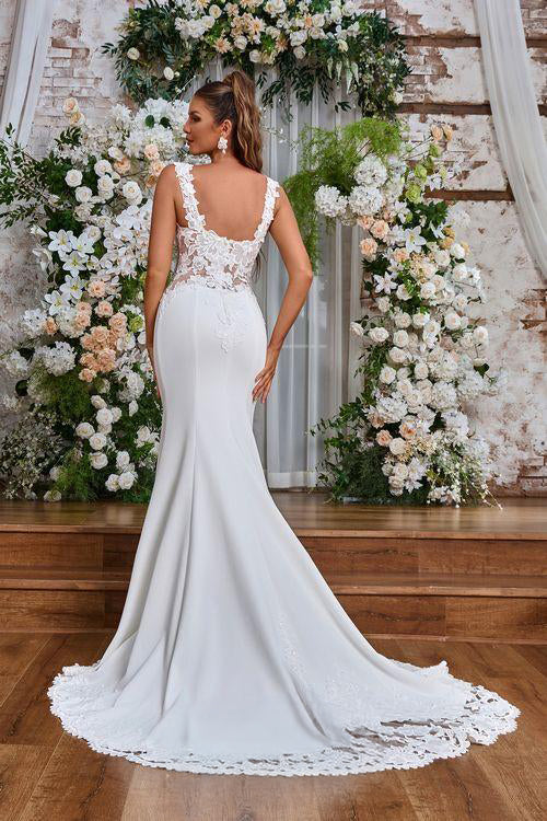 Elevate your special day with our JA8007 wedding dress. Crafted with intricate lace detailing and a flattering mermaid silhouette, this floor length gown exudes elegance. The V-neckline and delicate straps add a touch of sophistication, making it the perfect choice for your dream wedding. In elegant ivory, it's a true masterpiece.