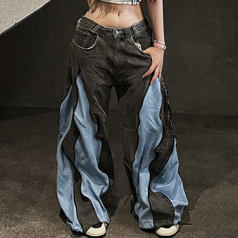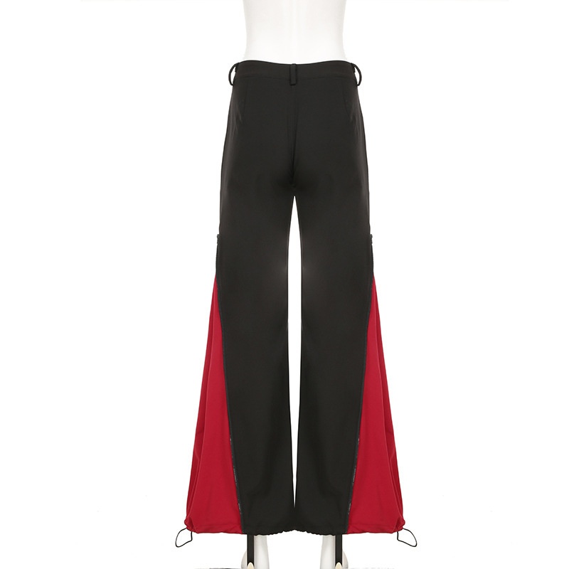 Personality Contrast Color Stitching Low Waist Casual Pants Zipper Design