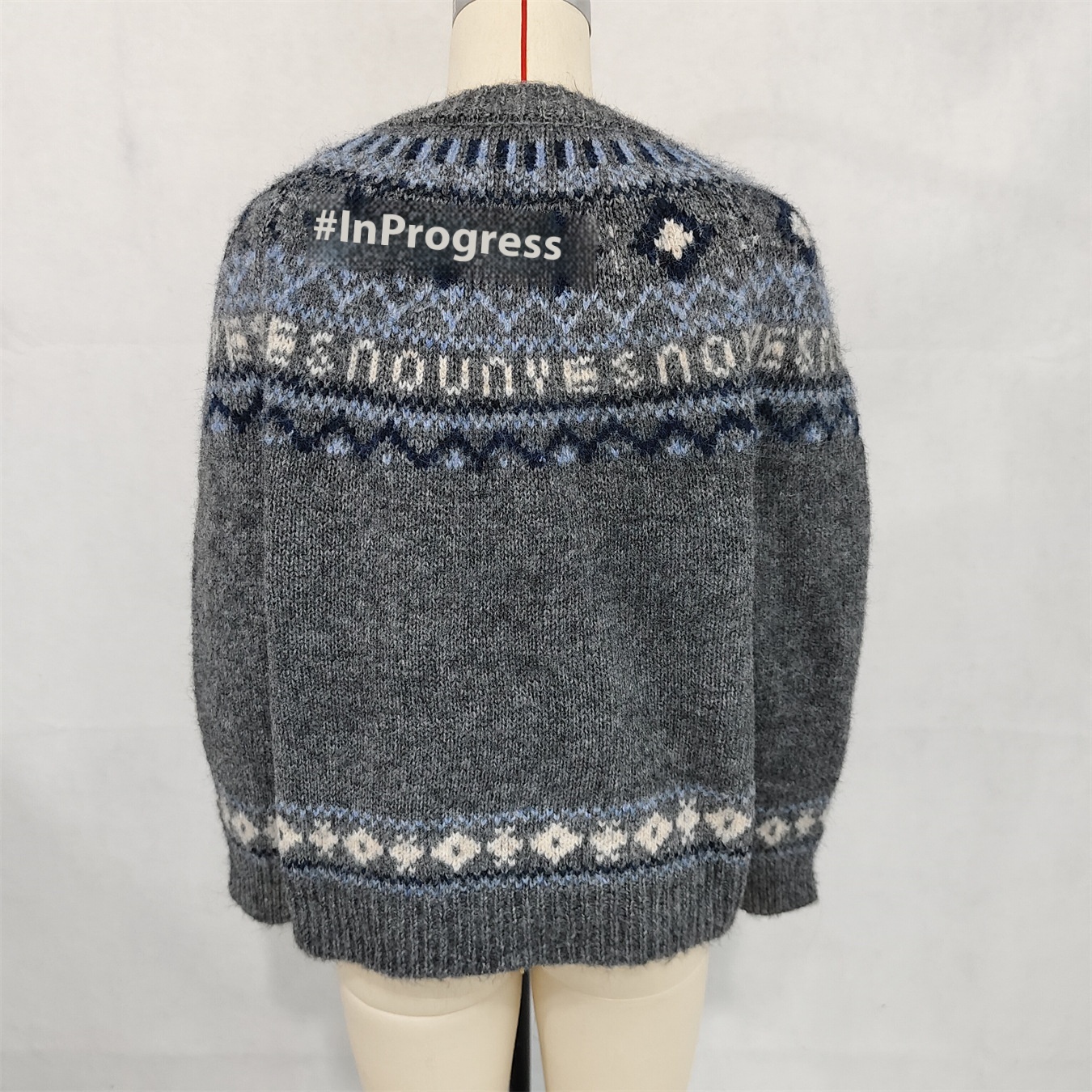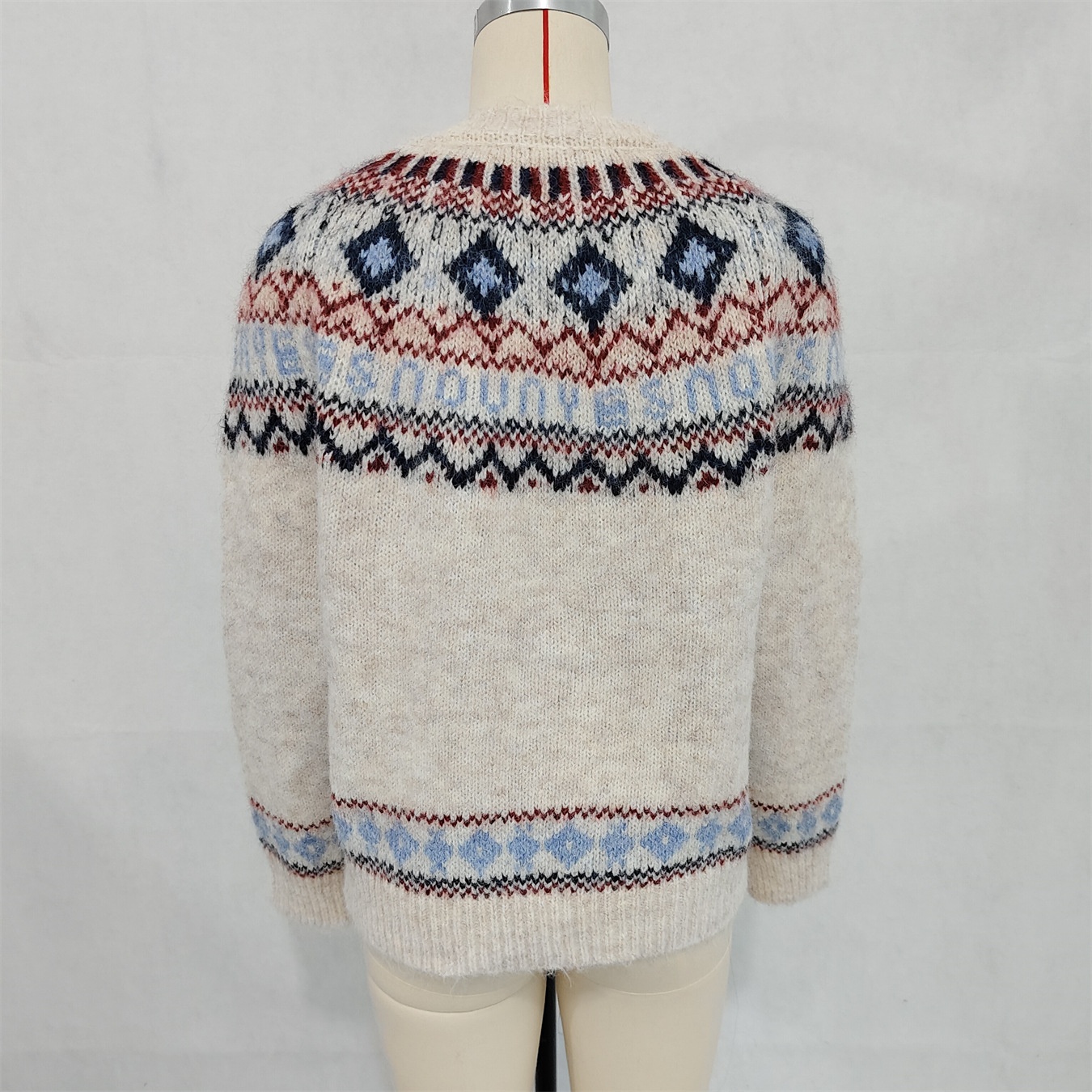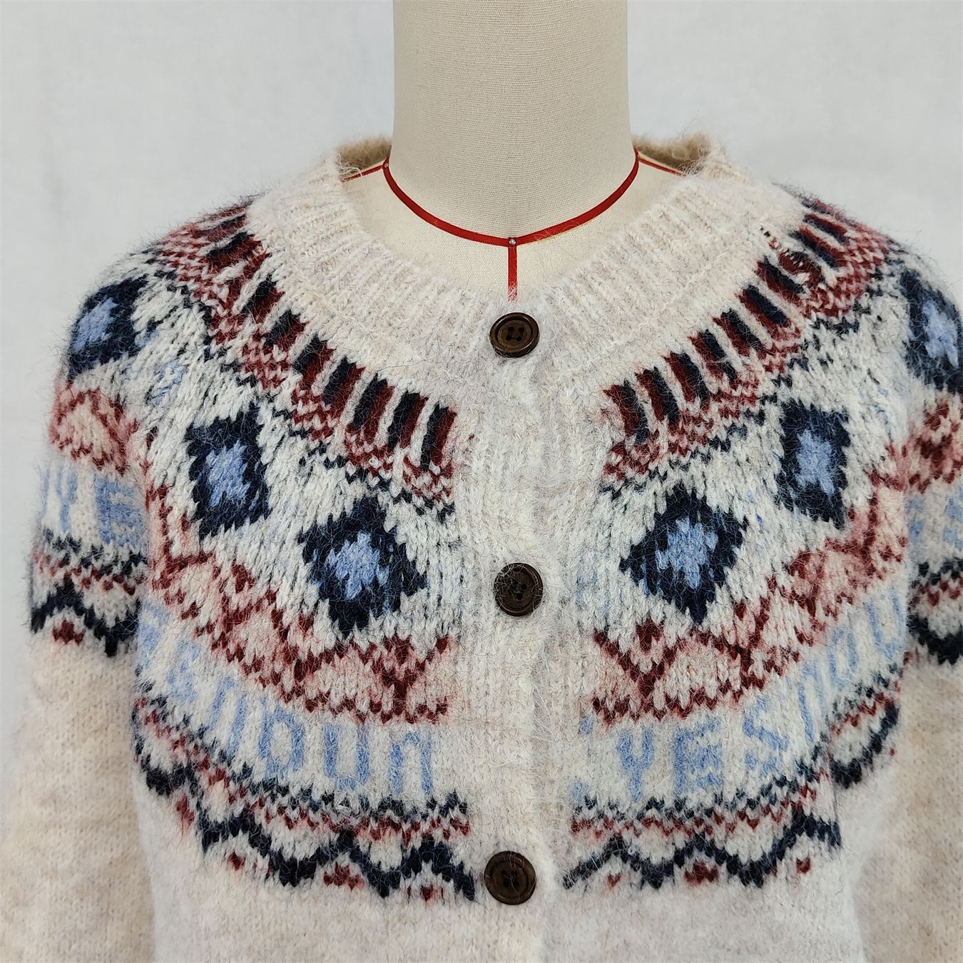 Retro Knitting Patterns Jacquard Fashion Round Neck Long Sleeve Coat For Women