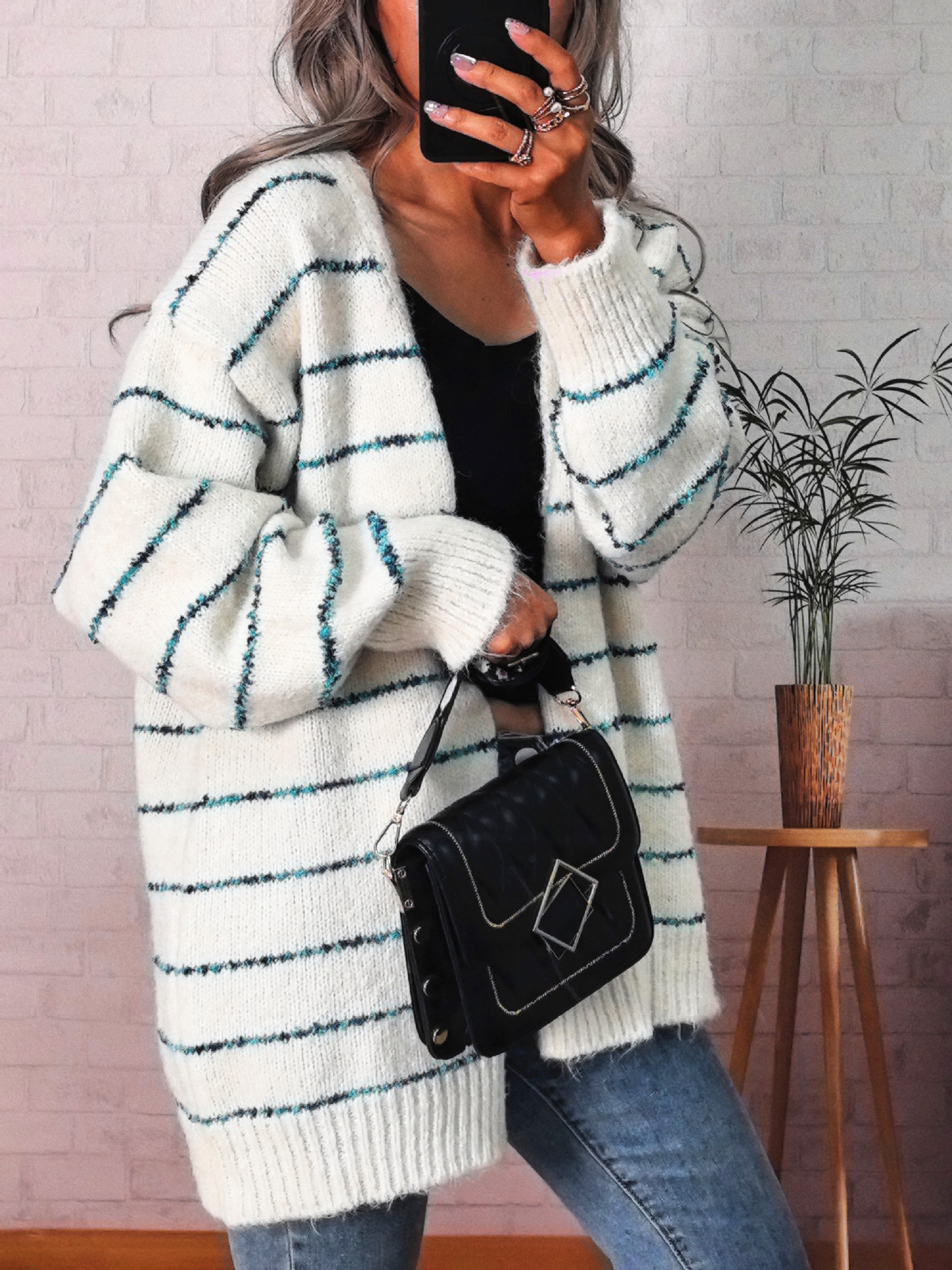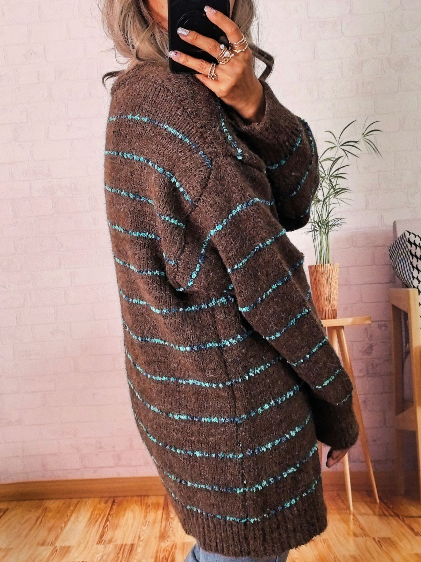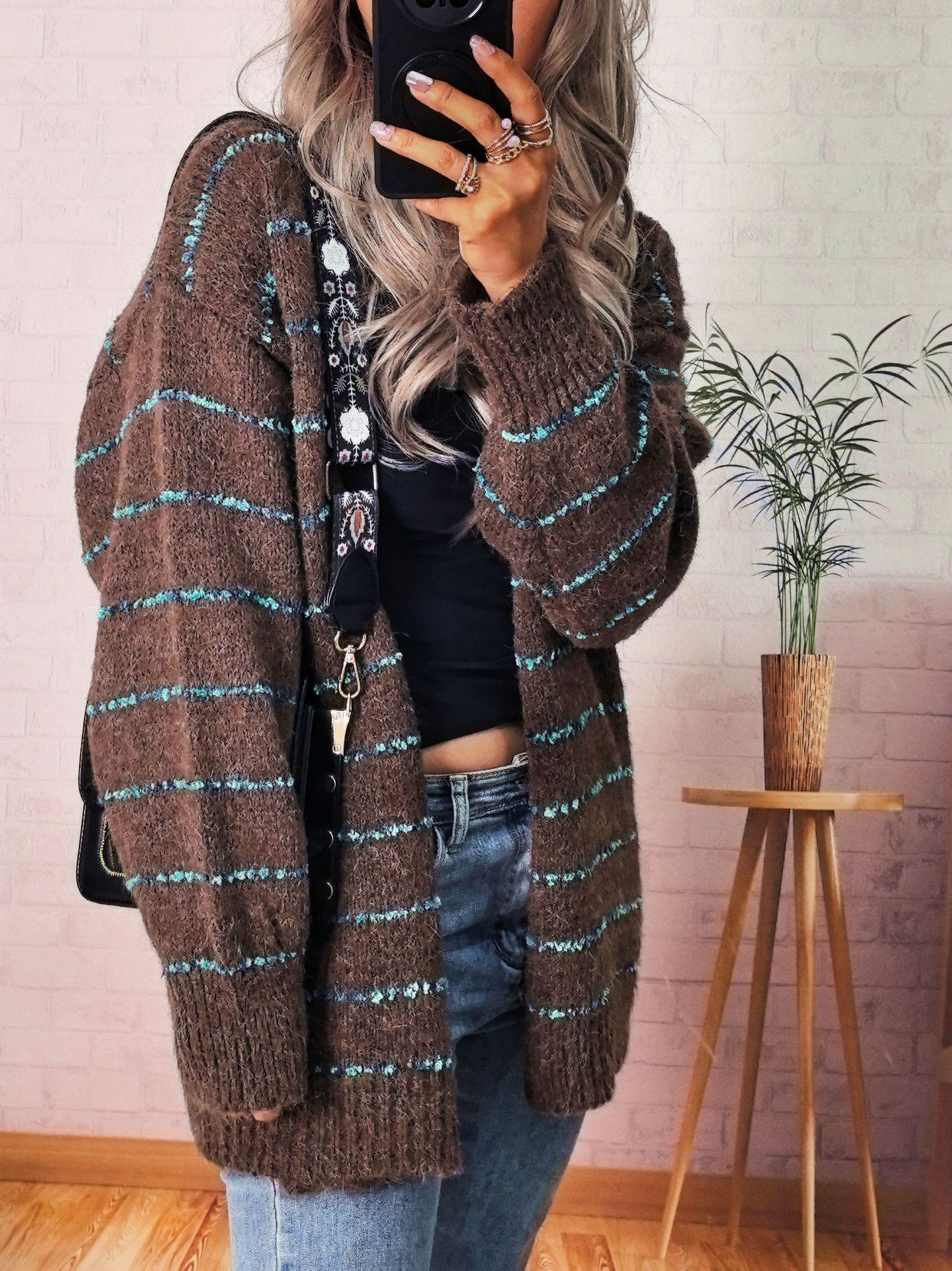 Retro Loose Striped Contrast Color Single-breasted Long Knitted Sweater Coat