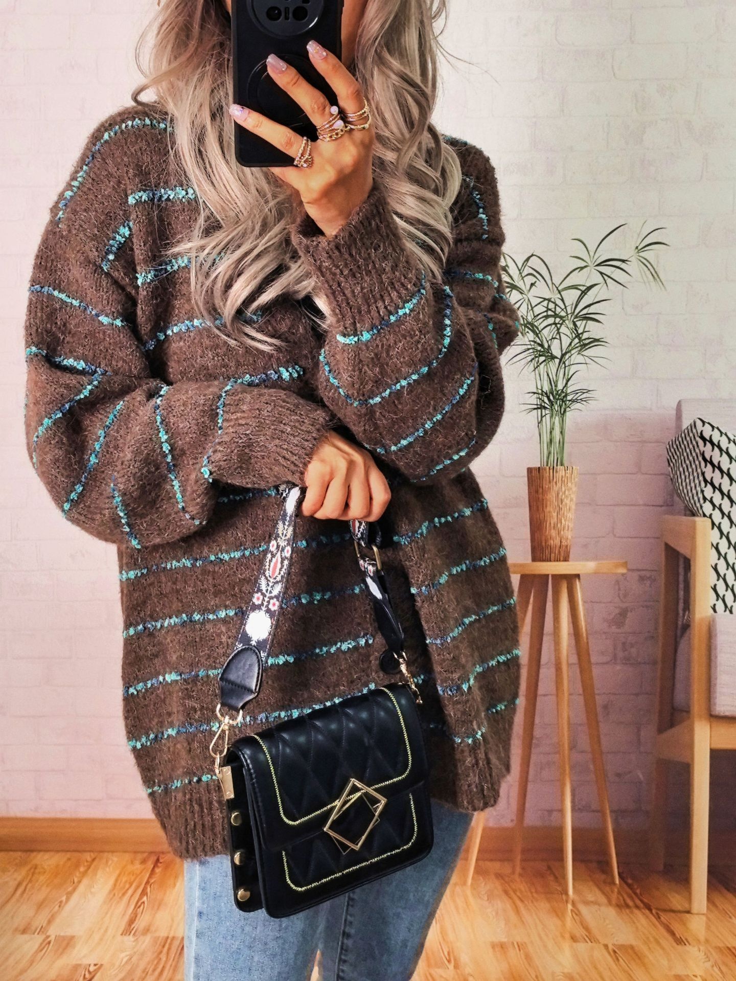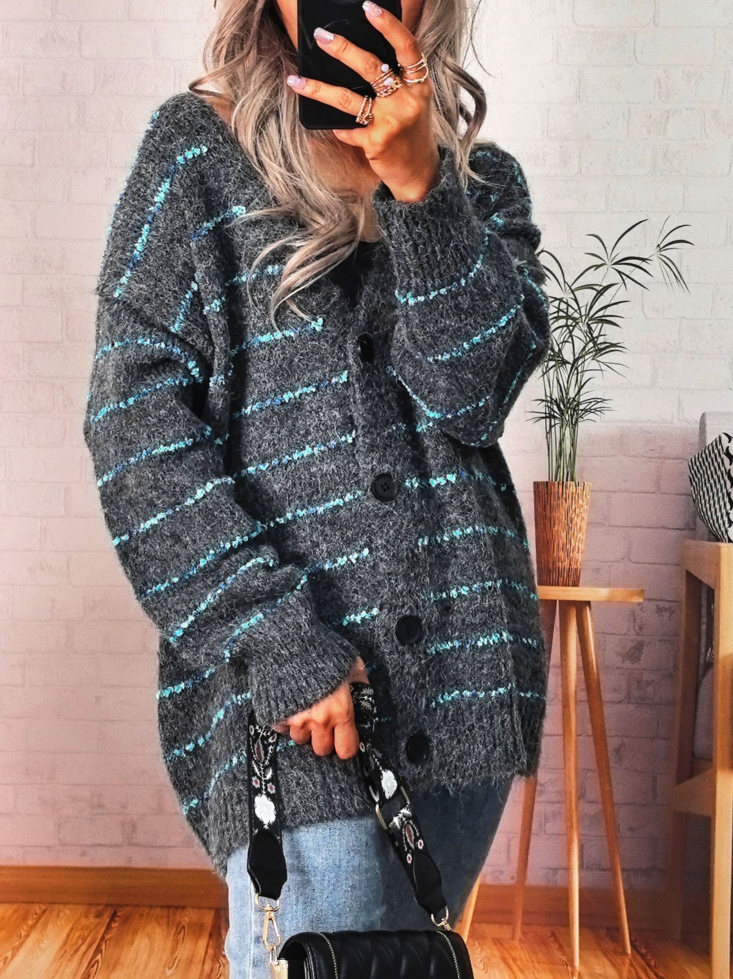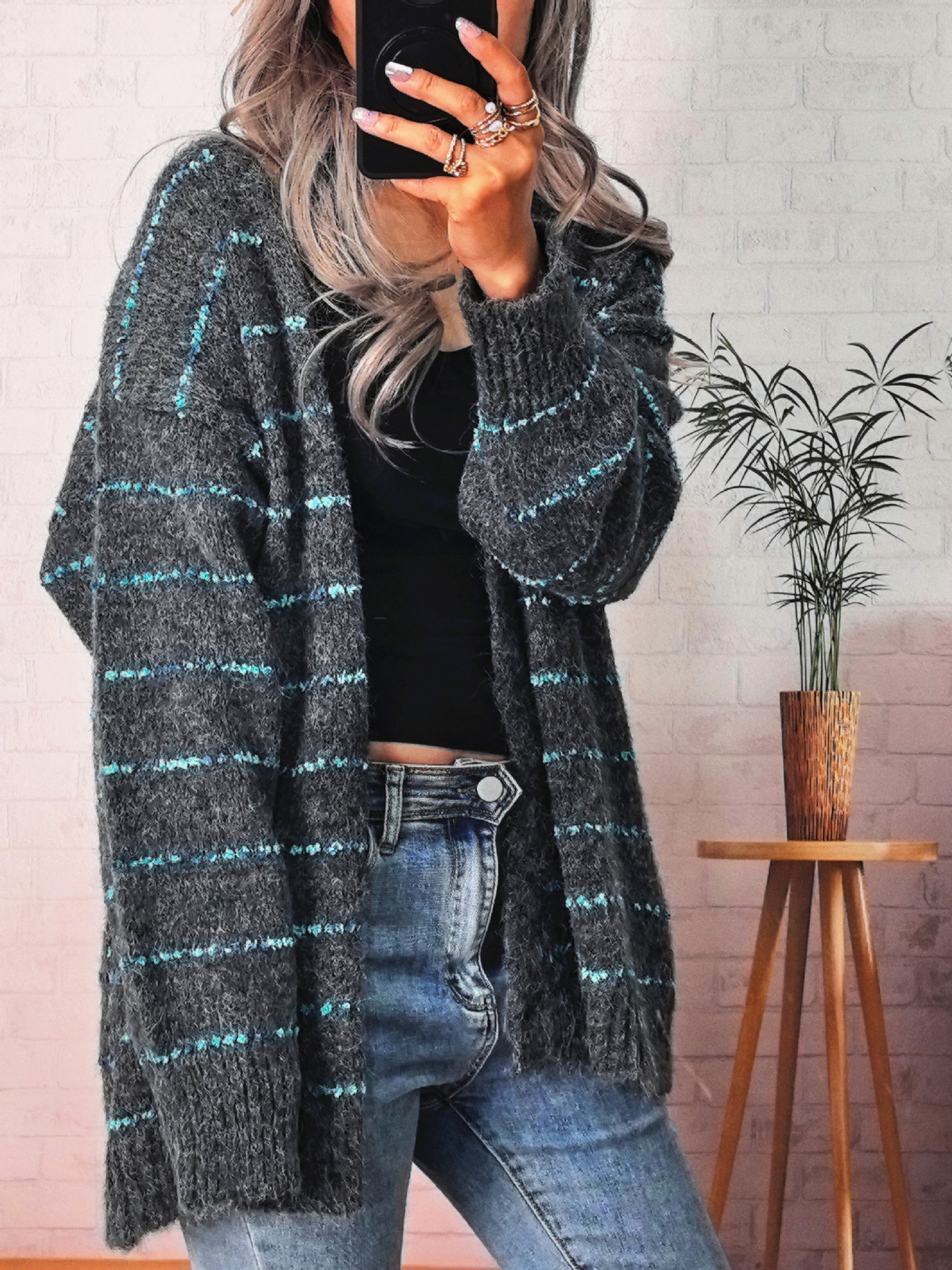 Retro Loose Striped Contrast Color Single-breasted Long Knitted Sweater Coat