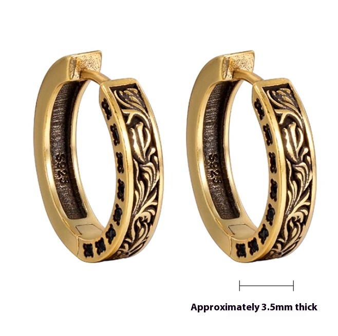 S925 Sterling Silver Vintage Gold Earrings Men's Hip Hop