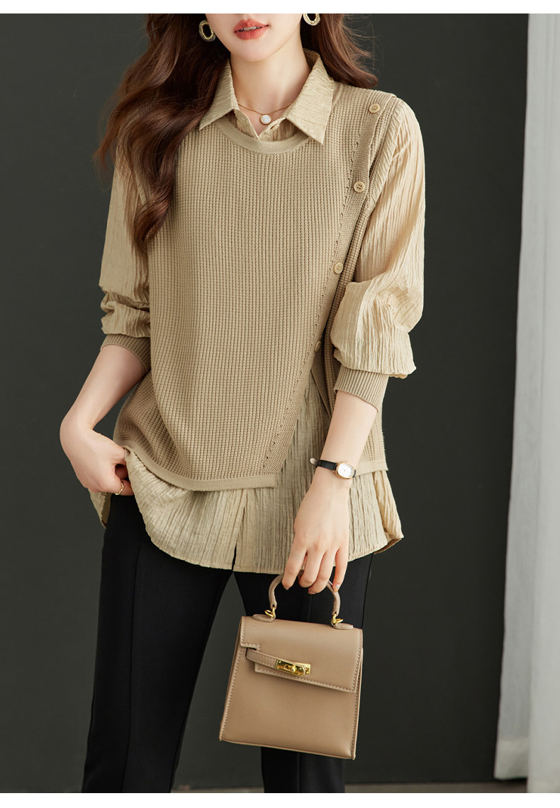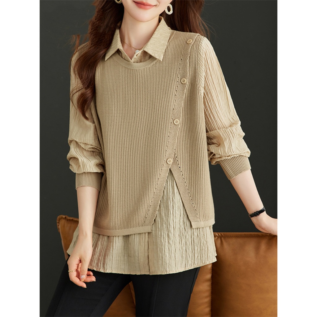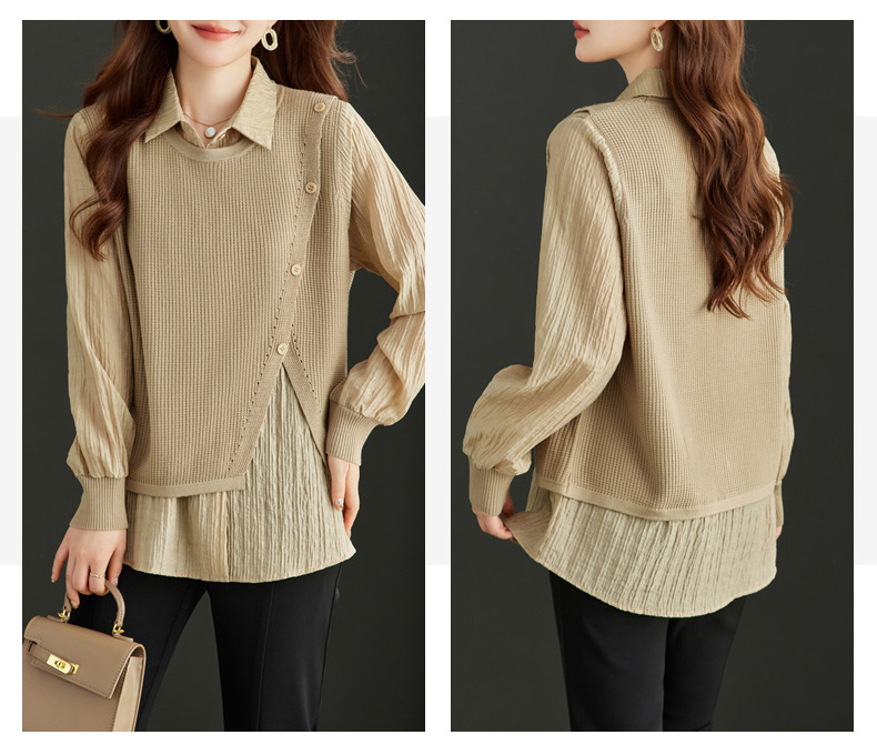 Spring And Autumn Loose Belly-covering Shirt Stitching