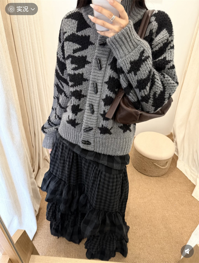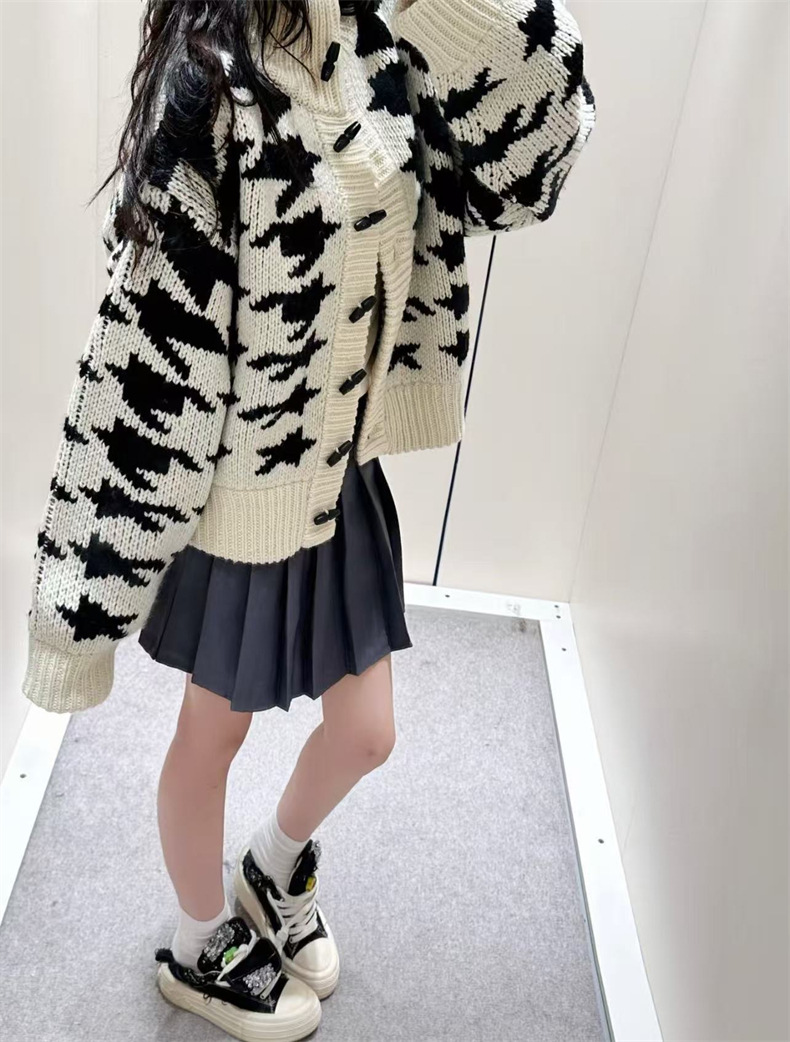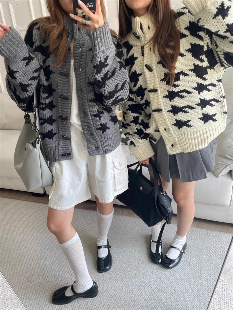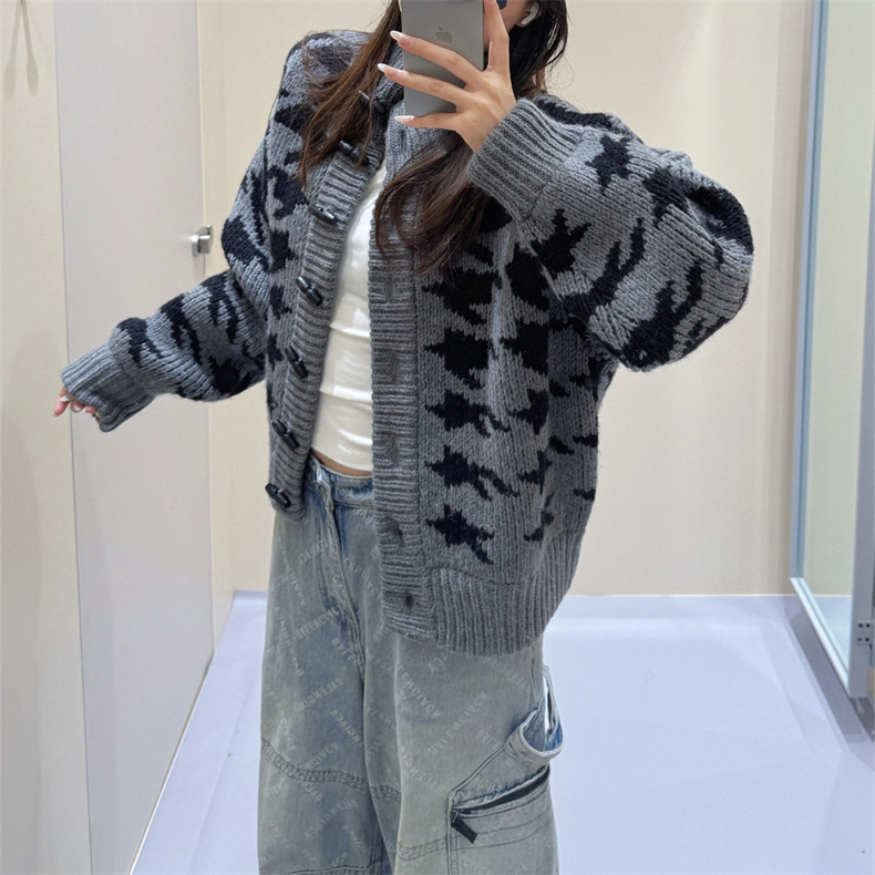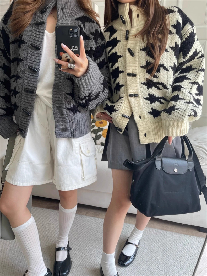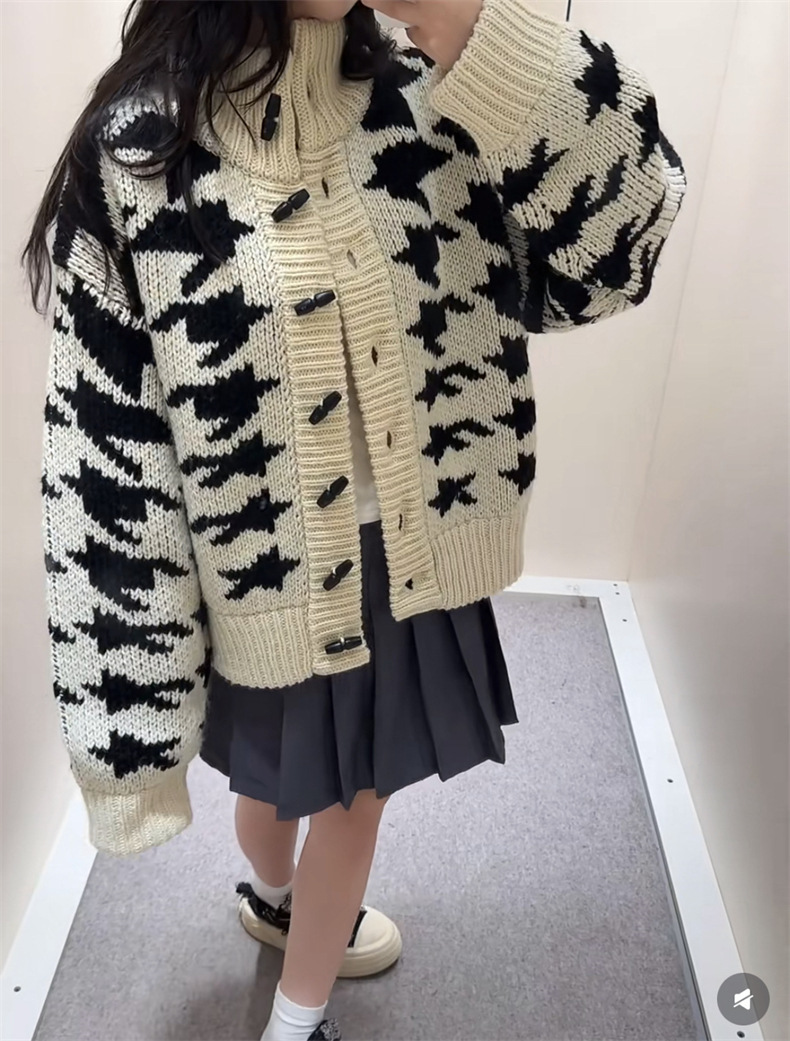 Stand-up Collar Jacquard Horn Button Sweater Coat