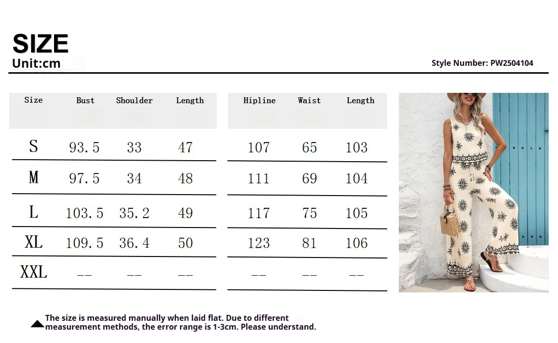 Thin Breathable Positioning Printing Vest Jacket Breasted Elastic Waist Wide Leg Pants Two-piece Set