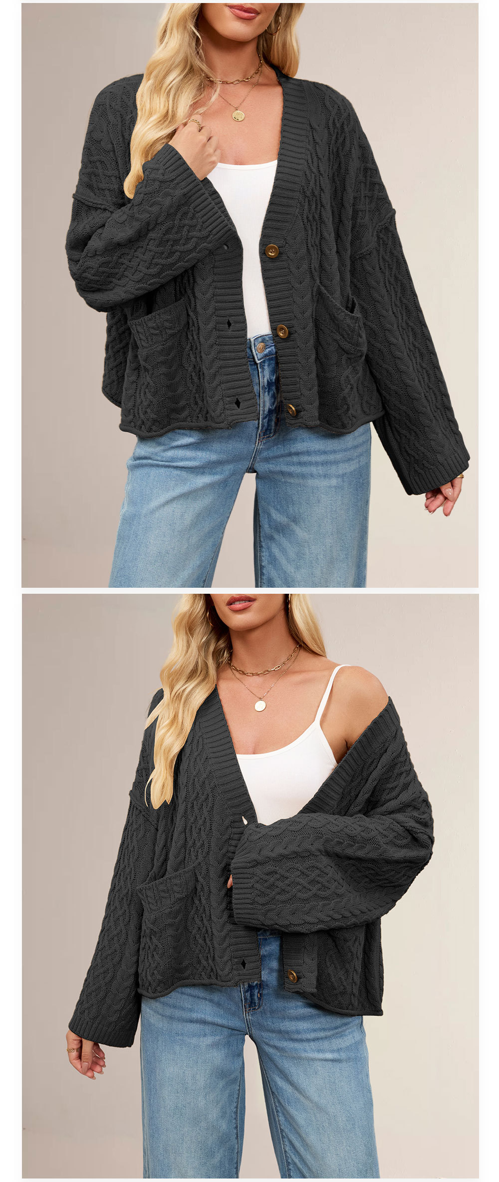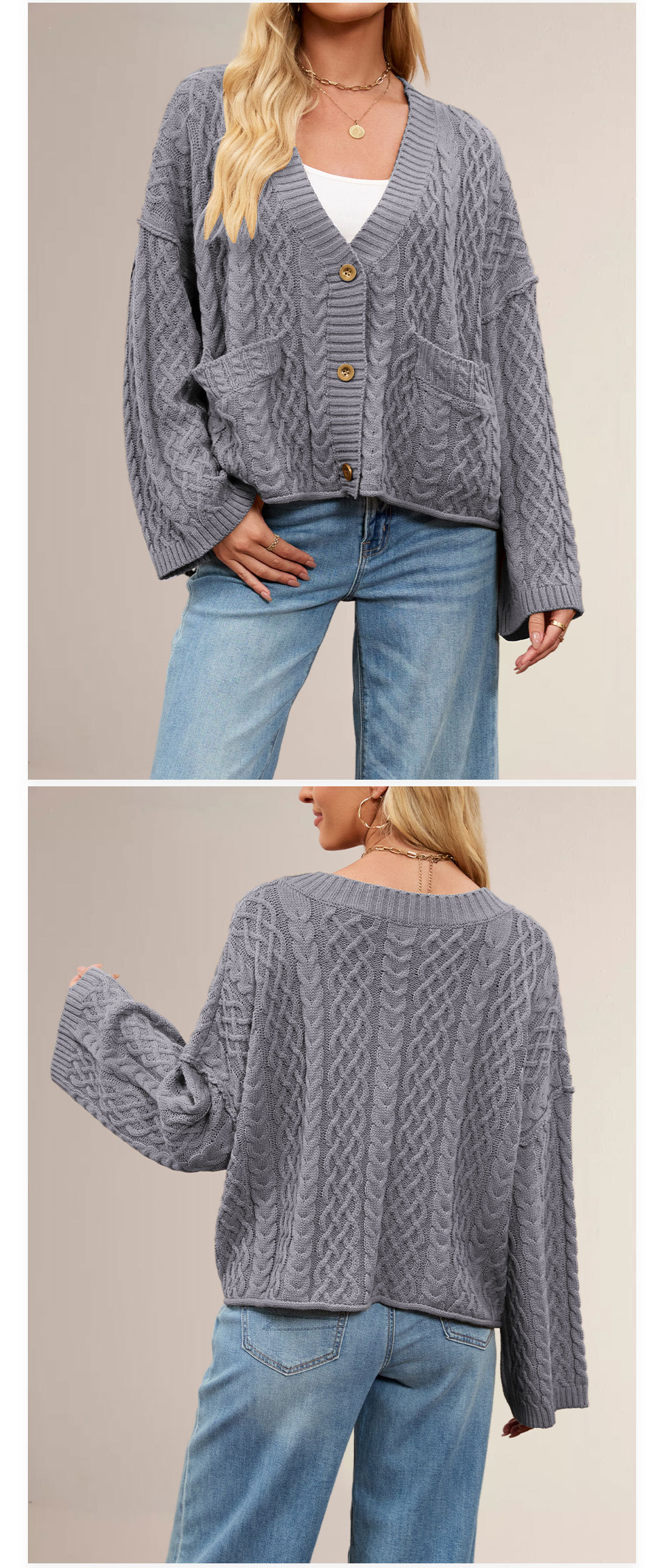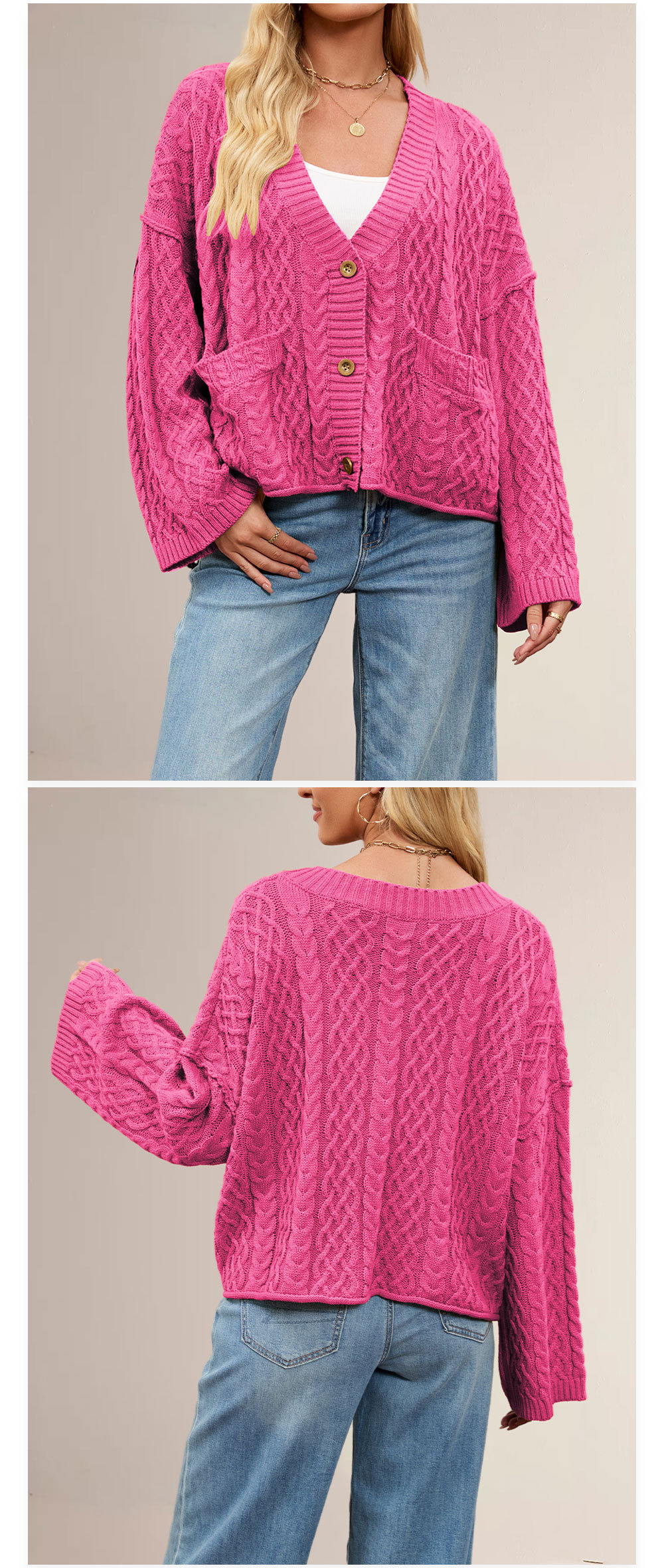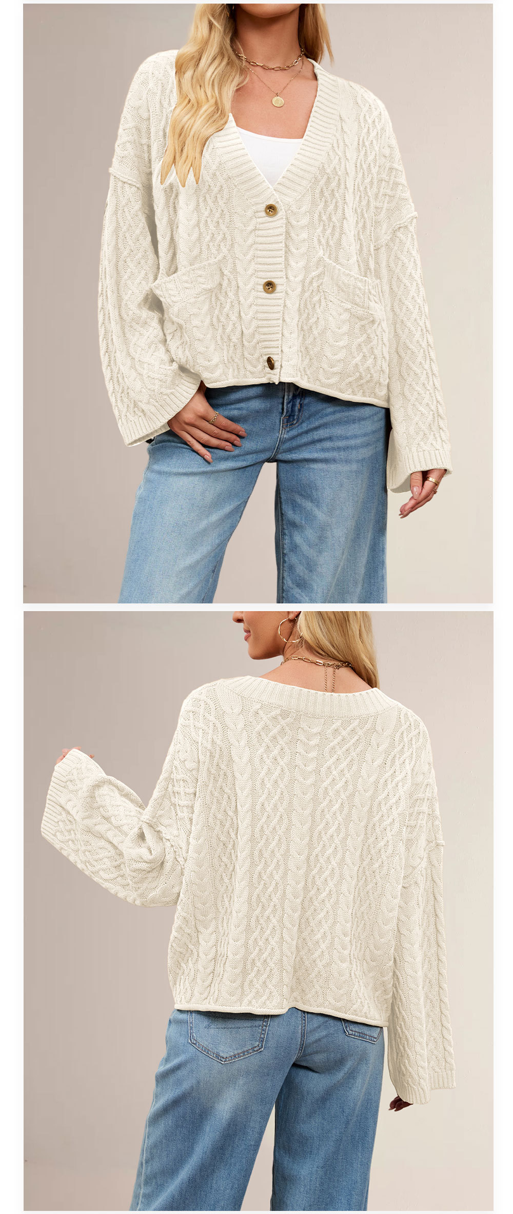 Women's Cable Loose-fitting Solid Color Knitted Cardigan