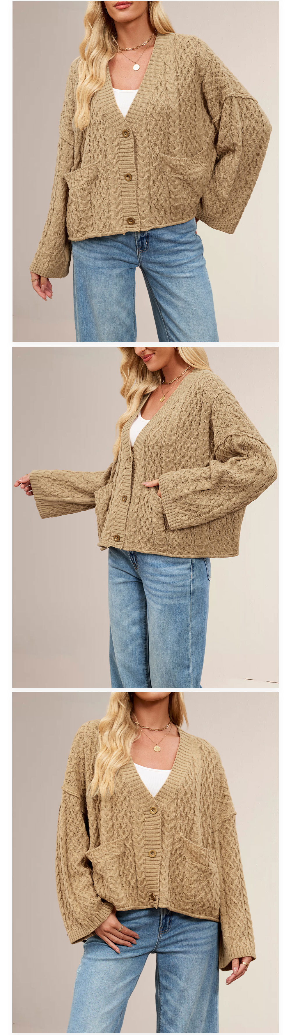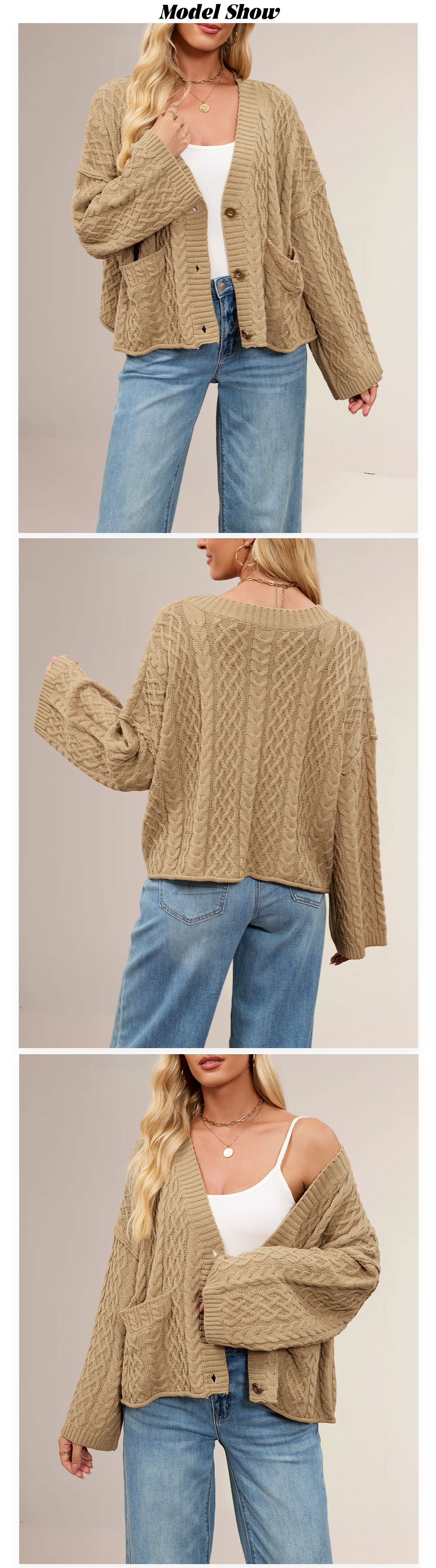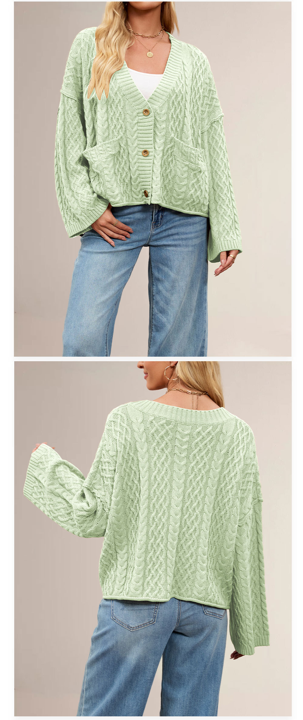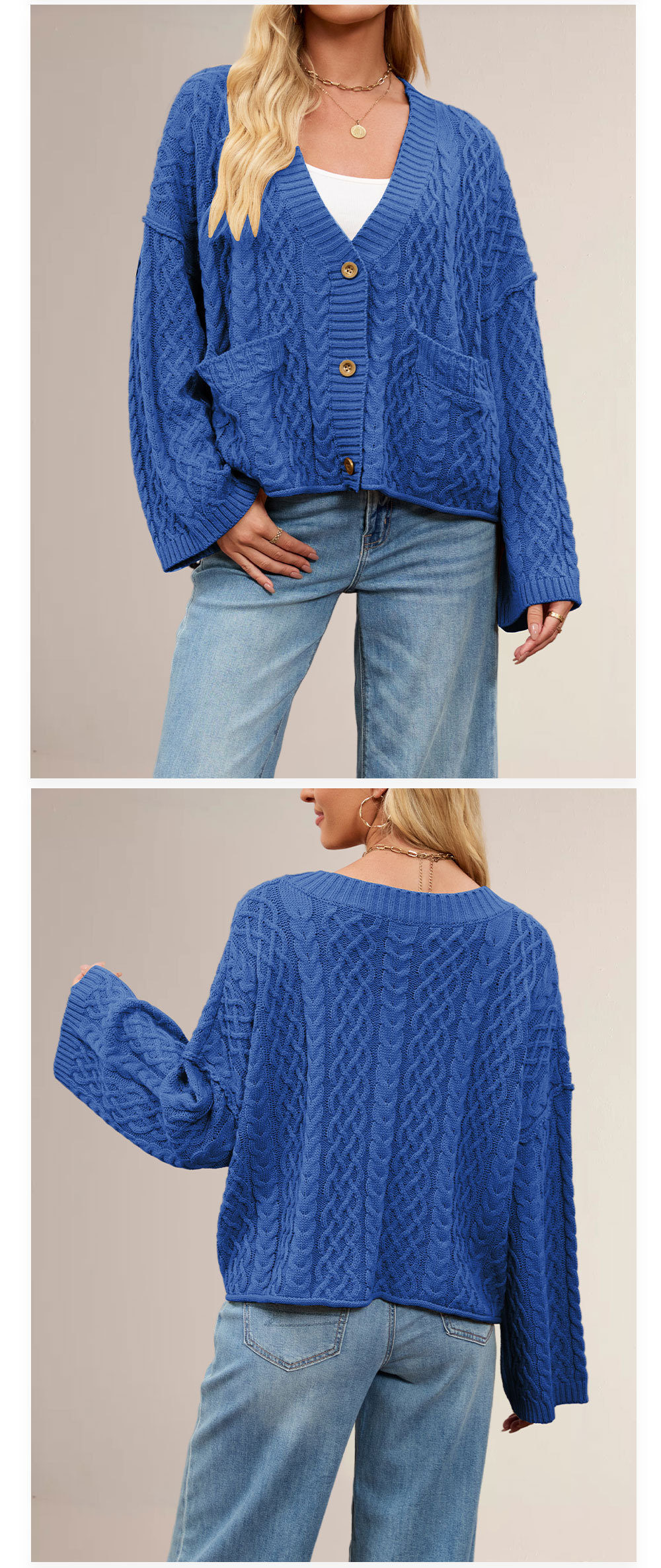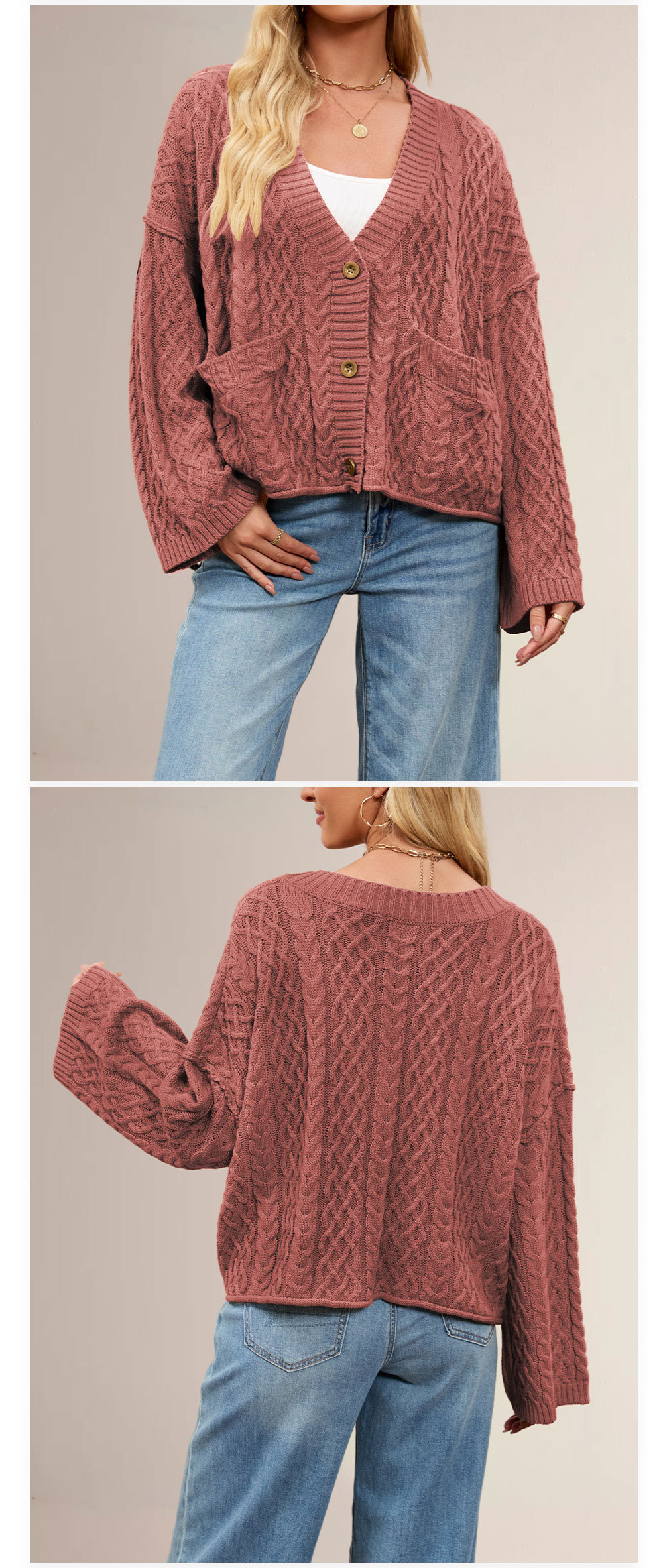 Women's Cable Loose-fitting Solid Color Knitted Cardigan